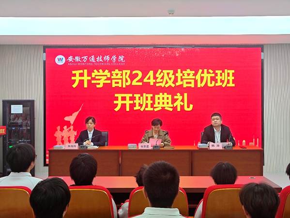 此次开班典礼的成功举办,为 24 级培优班的教学工作注入了强劲动力,也让全体师生更加坚定了携手奋进、全力冲刺的决心。未来,安徽万通技师学院升学部将以培优班为抓手,持续优化升学培养体系,为更多学子搭建通往理想院校的坚实桥梁,助力他们在人生新征程上绽放光彩。