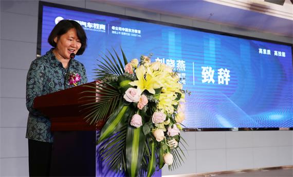 中国东方教育集团创就业管理中心副总经理赵群 活动现场还对万通汽车教育2021年度优秀创就业学子进行了视频展播,中国东方教育集团创就业管理中心副总经理赵群在致辞中对获得表彰的优秀学子表示祝贺,对关心万通汽车教育发展的企事业单位表示衷心的感谢。多年来,万通汽车教育始终坚持以社会需求为导向、以技能教育为根本,深化校企合作,与众多知名企业建立了长期稳定的合作关系。以“共享资源、协同育人、创新合作”为主要方式,深入推进产教融合、校企合作,取得了丰硕的成果。