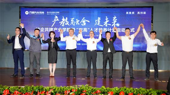 高素质、高技能“双高”人才培养计划启动仪式合影 最后,中国东方教育集团总裁许绍兵、中国东方教育集团汽车事业部总经理陶青与百度、奇瑞、京东、蔚来、比亚迪、埃夫特等企业领导共同按下手印,启动高素质、高技能“双高”人才培养计划。万通汽车教育将与合作企业共同打造一个高素质、高技能人才培养高地和技术创新服务平台。